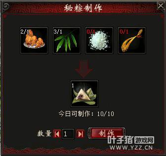 端午节活动流程现正火热测试中,我们一起看看详细流程。 一、除妖夺棕 1.活动时间 2017年5月27日0:00-2017年5月30日23:59、2017年06月01日全天 2.参与条件 人物等级≥30级,时间宠≥10级 3.活动场景 长安东、大唐境内、大唐边境、五指山、北俱芦洲 4.活动流程 ①寻找抢走制粽材料的妖怪: 3-5人组队,前往长安东、大唐境内、大唐边境、五指山或北俱芦洲等场景。 寻找抢走制粽材料的水怪(大鱼先锋、巡海夜叉、海中精魄、水妖龙女)进行挑战。 ②挑战抢走制粽材料的妖怪:与妖怪战斗,击退那些抢走制粽材料的妖怪,找回用于制作粽子的材料。 ③战斗胜利获得奖励:成功进行挑战,获得战斗胜利,则获得奖励。 5.活动奖励 二、制粽名师 1.活动时间 2017年5月27日0:00-2017年5月30日23:59、2017年06月01日全天 2.参与条件 人物等级≥30级,时间宠≥10级 3.活动场景 皇宫 4.活动流程 ①找到五位制粽名师:3-5人组队,前往皇宫,找到那里来自五湖四海的制粽名师。 ②挑战四位制粽名师:洛阳名师、长安名师、江南名师、岭南名师、海外名师等五位制粽名师,活动期间每天可逐一挑战一次。 ③战斗胜利获得奖励: 五场战斗挑战难度依次提高。 每场只有首次成功挑战,才能获得经验奖励和随机物品奖励。 每场挑战成功后,可获得2个普通馅料与2个秘制馅料,分别用秘粽制作与百粽之王两个活动。 5.活动奖励 三、秘粽制作 1.活动时间 2017年5月27日0:00-2017年5月30日23:59、2017年06月01日全天 2.参与条件 人物等级≥30级,时间宠≥10级 3.活动流程 制粽材料包括粽叶、糯米、彩丝与秘制馅料,点击任何一个材料,即可打开制粽界面。 其中粽叶、糯米、彩丝在除妖夺粽活动中随机获得,若某种材料不够,不妨与好友交换。 而秘制馅料则在挑战制粽名师时获得,也可以与其他玩家交易获得。 每人每天最多制作10枚豆沙粽;制作出来的粽子可用于奇粽连环的玩法。 四、奇粽连环 1.活动时间 2017年5月27日0:00-2017年5月30日23:59、2017年06月01日全天 2.参与条件 人物等级≥30级,时间宠≥10级 3.活动流程 粽子包括豆沙粽、红枣粽、板栗粽、蛋黄粽、鲜肉粽、八宝粽、水晶粽等共七种,对应奇粽连环一阶到七阶粽子。 其中豆沙粽是通过秘粽制作合成得到,其他粽子都是通过上一阶换取得到。(换取有一定几率成功,若失败则粽子消失) 若选择直接吃掉粽子,则可获得相应的奖励。 但如果选择换取高一阶的粽子,则有几率成功将粽子升级,但一旦失败,则粽子会消失。(只能按照升级前的等级获得经验奖励) 升级过程中的任何粽子都可选择直接吃掉,或是选择继续升级。(最高阶的水晶粽除外,只能直接吃掉)