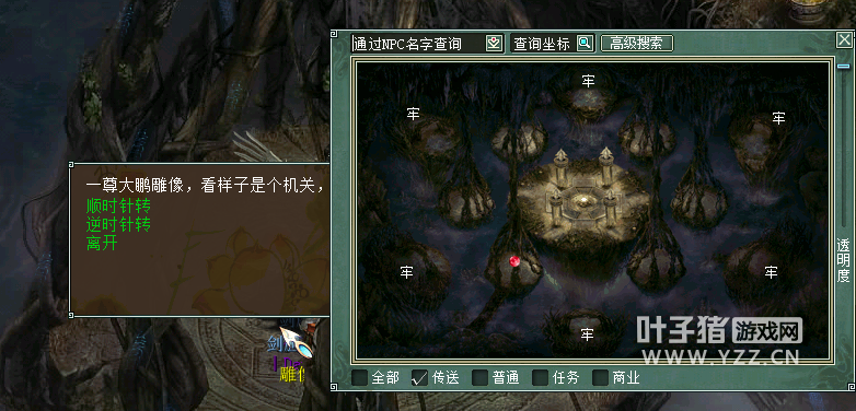混天大牢(难度:两星) 主流套装: (卓越)凤鸣、雅声、六芒、通天、燃灯 (简单)紫阳、重楼、凤鸣、灵台 这个副本和中殿是一样的,不过出的套装对于五开党来说有用的不是很多,当然这个看自己的需求了,整体来说怪物是很好杀的,全称挂机,不用带攻宝宝,带敏宝宝,以防被砍死,可以反拉自己,怪物躲闪,抽秒结束。 流程: 通过桥梁把六个位置的使者解救出来,然后中间大鹏杀掉任务完成,刚进入内圈的6个岛屿是守卫,外圈的6个岛屿是牢房,顺序就是去岛屿把岛屿守卫杀死,然后搭建桥梁转动到牢房位置,通往牢房杀死守卫解救使者。个人感觉逆时针怪物逃跑的几率大一些(纯属个人爱好),所以一般是逆时针杀; 小怪分为胖子(雕像守卫)和小妖(牢门守卫),胖子是如果队伍四种族不全,缺的那个种族(比如我的队伍缺男人,里面的男人就会自爆)会自爆,不过伤害不高,记得中途拉次血就可以,其它种族小怪,会砍,仙魔基本必死,所以带敏宝宝反拉自己;小妖抗抽,但是不碍事,3抽2秒结束战斗,杀完之后点牢门,然后点使者(一定要记住,要不杀完还得回来点),这就算一个小岛解救完成,一共解救6个,BOSS就出现。 |
