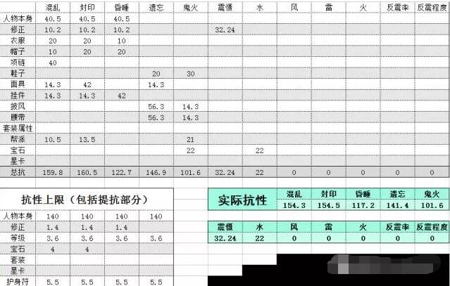 男人的人法、遗忘抗性除装备外,在战斗中,可有符文、月卡、帮派以及星阵给予加成,满状态下,可各有25点左右提升,另外女魔的盘可增加三种人法抗性各16左右,另外灵宝法宝还可增加共20点抗性;所以在战斗中,单项抗性最多可有45-60点左右的提升。 对于血量在30万以内的男人来说,抗仙法的性价比不高,但并不代表没用。 性价比不高的原因是,纯万古同悲伤害在1400灵、传世、狂暴、狂暴程度、克300的情况下,输出就能到30万,即使抗仙法还是会被一炮带走。 此时,做好鬼火抗性,远比仙法来的实用以及实际。 实战中,如果只有一个单位可以对你造成困扰,你可以想办法使其无法顺利出手来解决,但如果对方有两个单位可对你造成困扰,则大概率事件是: 你将成为该场PK中,你们队伍的拖油瓶。 平民中高敏男人配装方案: 适用于打血队,因为在队伍中的敏序较高,容易吃伤害,所以抗睡就显得没那么重要,对于平民玩家来说,全部舍掉。 抗120.9的鬼火可以保证遇上高忽视霄汉鬼的时候,不至于见光死。 平民低敏男人配装方案: 需要用到五级鬼火步定,其一是需要步定的抗性,其二可以大幅增加血量。 低敏男人,换句话说就是不追速度的,那么三世男魔对他来说没什么用了,所以这里采用的修正是1女魔23男人;若想追求更高的人法抗性,可采用1女魔2男人3女魔的修正。 腰带的一项绿字,在这里选择的是抗鬼火,也可以选择抗震慑。 在本文开头的两个关于男人配装的链接中,曾提及低敏男人该抗什么,所以这里就不再赘述为什么低敏男人也不抗仙法了。接着来看!