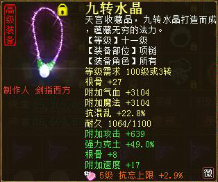 5.星卡 对于满抽魔来说星卡是最重要的,我建议大家去购买双忽视星卡。如果没有双忽视星卡那么就选择克忽视,双忽视星卡好在做什么日常都不需要吃忽视F,而克忽星卡需要吃F才可以抽满。 我对于大话装备的理解是装备都是租来的,不喜欢或者想换就卖掉,亏也是10%-20%。况且还有可能会赚钱,所以我对装备价钱能买就买,属性达标就不投资了,下面是我的双忽视抽星卡: 11级双忽视星卡 我的是500买的,很好用。基本所有副本和五倍域外我都是满抽,当然除了14、15和穷奇。14、穷奇我吃F开帮派就OK。 14级双忽视星卡 这张星卡是我女魔本服2600买的,我的概念就是租的。我玩的时候不需要每次吃F投资,我不玩的时候卖出去也不会亏。 当然大家要是觉得这个投资太大 ,就买11-12级资质85左右的就够用了。 6.项链 项链比较简单,抗看自己需要,克在45左右足够。 这样的克水项链在一生有你大概是3000W-4000W。下面附上我的克土链子: 项链 这个克土项链不好就是+根骨,要是换成敏捷或者灵性都可以,这个链子我是1200W买的。 7.配饰 配饰的话就是随便看自己的需求买,附上一套我的配饰。 |