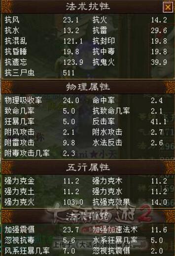 我这个属性是少了锁子甲,少了无价容止80点克,项链少了20+克,以及忽视5的星符,当时我的属性是战斗忽视7强23克180、抗混138、忘132,四系仙法45左右鬼火40,敏2350+,杀塔6不杀雕像站的很稳,卓越7盘上之后也是铁的。项链换了就是克200+,多开的朋友没事多刷刷中殿,收益不错灵修也多,可以洗洗套装属性提升一下仙法鬼火抗性。 另外,在武器方面,现在16级忽视的比较贵,可以多多关注一下仙器,仙器来说。最好是2阶,棒子克火、鞭子克水都是不错的,当然一阶环强5+克17也可以将就。 实际情况,其实不用想我一样太在意抗性,有时候多考虑一下敏压制会好一些,宝宝敏不够就多考虑一下坐骑。 好了,今天就分享到这里了,希望对大家有所帮助! <<<点击进入大话西游2论坛 讨论>>> [编辑:韦小贝]