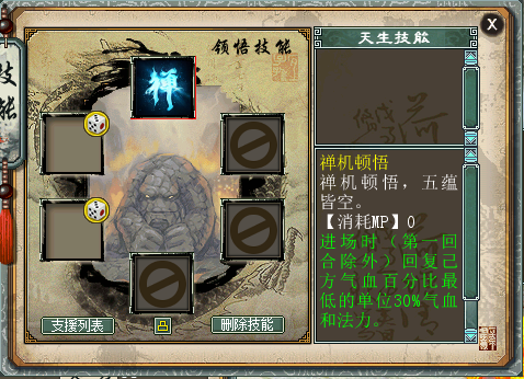 新技能的出现,给我们带来了怎样的改变?哪些是最适合我们?我们一起来分析一下: 以下是官方新技能的描述: 【高级技能】 禅心通明:召唤兽受到仙法鬼火三尸狂暴时,提升该项法术的抗狂暴几率,持续2回合。 气定神闲:物理攻击敌方人物单位时有几率不给目标增加怒气和怨气。 物以类聚:死亡离场时,如果当前支援列表第一位的召唤兽与自己造型相同,则提升其闪现几率。 高级禅机顿悟:进场时(第1回合除外)回复己方气血百分比最低单位50%的气血和法力,同时有几率解除其身上一个被控制状态。(仅在与玩家之间战斗有效) 高级暮鼓晨钟:入场时获得一个可以吸收一定伤害的护盾,持续3回合,前3回合不生效。 沉雾:使敌方首次对己方使用多体师门法术时有几率主目标随机。(仅在与玩家之间战斗有效) 以己渡人:牺牲自己,指定一名本回合还未出手的己方单位,有几率使其立即出手,前3回合不可使用。(根骨要求≥450) 云起潮生:使用仙法攻击在造成气血伤害时,会附加等于部分气血伤害的法力伤害。(仅在与玩家之间战斗有效) 【低级技能】 暮鼓晨钟:入场时获得一个可以吸收一定伤害的护盾,持续3回合,前3回合不生效。 禅机顿悟:进场时(第一回合除外)回复己方气血百分比最低的单位30%气血和法力。(仅在与玩家之间战斗有效) 一、禅心通明 召唤兽受到仙法鬼火三尸狂暴时,提升该项法术的抗狂暴几率,持续2回合。 1350W亲密抗狂暴几率12,这里的几率应该是随着亲密而增加,生效两回合,适用于血宝宝。假如在不狂暴的情况下加上福禄双全,那么效果可想而知。当然不要说几率11没用,这里的抗狂暴几率和仙狂暴几率综合叠加,那么狂暴的可能性就不是很大了。无疑为仙的不死宝宝又披上了一层厚厚的保护甲。 特点:需要高亲密,减伤明显,适用血宝宝。杀BOOS也可用! 二、气定神闲 物理攻击敌方人物单位时有几率不给目标增加怒气和怨气。 这个技能不增加怨气和怒气,只是适用于PK战斗的大力宝宝。对于大力宝宝来说,义之金叶神/信土、分花、混乱、小当、仙风、吉人、神工鬼力、倍道兼行、化无、气定神闲、取之有道、顺水推舟、舍生。大概会用到以上的技能,取舍哪个要看自己的具体情况,整体来看,此技能适用于少数宝宝战斗中持续作用性小。怨气和怒气队伍自身和对方的鬼仙补给,气定神闲的有几率性起到的效果就较小了。 三、物以类聚 死亡离场时,如果当前支援列表第一位的召唤兽与自己造型相同,则提升其闪现几率。 这里需要注意一下,当前死亡召唤兽和支援列表第一位召唤兽造型相同(变色不影响,神兽凤凰和普通凤凰也属于造型相同)。是不是给那些冰块控,兔子控的带来了福音。当然高端队伍还是以实用性来选择宝宝的。 这里可以优化设置,比如同样化无的宝宝,冰块和冰块,黄金和黄金放一起,支援几率会提高。所以在战斗中,可以适当调整闪现顺序,无疑又是加大了对指挥能力和操作能力的考验。技能是个好技能,但是这里我不由得想了一下,我们六个技能格子真的够用吗? 特点:pve pvp共用。有一定的实用价值,体现不明显,就如孩子一样,人们关注化无满天飞,却容易忽略孩子一场战斗中叫的次数对于局势的影响。同样,可能会忽略闪现对于局势的影响。再次说明,好技能是好技能就是不知道技能格子够不够用啊!!! 四、高级禅机顿悟 进场时(第1回合除外)回复己方气血百分比最低单位50%的气血和法力,同时有几率解除其身上一个被控制状态。(仅在与玩家之间战斗有效) 想到了什么?想到了什么!!!是不是仙风道骨,是不是仙风道骨的升级版本!是不是仙风可以退出舞台。(大胆猜测勿喷) 这是只国宝熊猫亲密应该不会高的离谱,那么35的解控几率也是很大了。这里的被控不知道会不会包括金箍、舍生、回头、饮鸩、移形之类?不好意思啊我也弄不懂啊~要是包括无疑逆天了! 特点:实用性超高,需求量超大。 五、高级暮鼓晨钟 入场时获得一个可以吸收一定伤害的护盾,持续3回合,前3回合不生效。 前3回合不生效,生效3回合,就像三年不开张,开张吃三年一样。81597的吸收,看数字肯定和亲密有关系,此处亲密未知。那么我想这个在关键时刻的作用性很大了,福禄双全+高级暮鼓晨钟+禅心通明。好嘛不死宝宝真不死了!为什么才6个技能格啊,我想要10个!!!好技能是好技能,但是也要懂得取舍。 特点:减伤明显,对了还有召唤兽装备的减免,还有百炼丹!!!加一起这宝宝还有信心秒死吗? 六、沉雾 使敌方首次对己方使用多体师门法术时有几率主目标随机。(仅在与玩家之间战斗有效) 70的几率!!!你这是给敌方弄了个多高度数的老花镜啊。当然这里不是躲闪,是随机,那么随机也是会随机到宝宝身上是不是。所以相对抗性稍弱的仙魔是不是会笑了,还有一个很明显的特点是:对于敏队来说,如果敌方想控制的是低敏宝宝,那么这个宝宝很大很大的几率会被随机到其他单位了,假如不点低敏宝宝控制,那么只能选择秒死低敏宝宝,否则是控制不到低敏单位的,所以这个技能是不是对敏队作用也很大。 特点:血敏通用。几率高。 七、以己渡人 牺牲自己,指定一名本回合还未出手的己方单位,有几率使其立即出手,前3回合不可使用。(根骨要求≥450) 这个暂时没有领悟到,所以几率还不知道,肯定和亲密相关。我们单纯的说一下他的字面意思吧。 首先想到了以诗会友这个技能,是不是很像