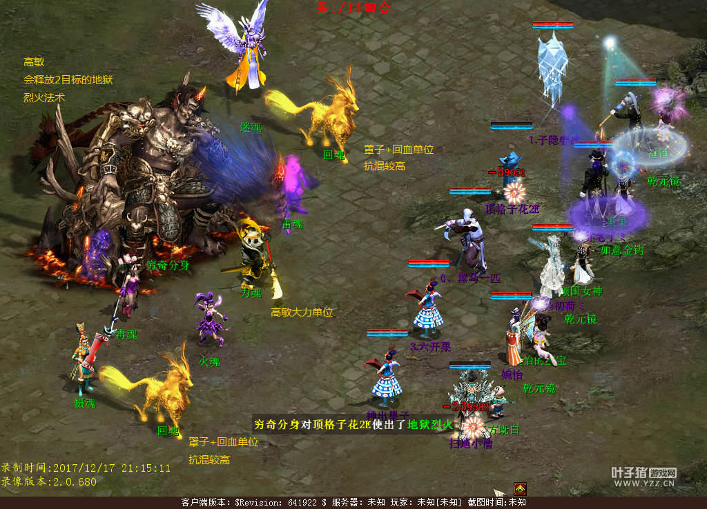 风妖,水妖,火妖,雷妖伤害不低。抗60+的宝宝不满血很容易死,所以需要女魔盘宝宝 尸妖罩子+大回,不解释。 盘妖最恶心了,出了女鬼魅惑,会让你们怀疑人生, 必须首先控制!必须首先控制!必须首先控制! 无常修罗血不算太多。350W左右,果子减了后很容易到达上限。 最好带上回血鬼保证火力续航问题,我们队伍就是我输出,男鬼回血。 控制好了盘妖,然后控制尸妖,掌握了杀法总体不算太困难。 消灭无常修罗后,通过神秘漩涡进入最后一关 击杀穷奇分身并封印。 穷奇分身怪物数据,怪物会放什么法术很明显,看来策划比较懒。火魂释放的是鬼火,有个女鬼盘不错。 注:穷奇分身高抗震慑,逢单数回合出手就是秒杀两个单位,有反震怪物,需要回血单位,浪淘沙是高敏大力单位,比我方魔要快。两个龙马是回血+罩子单位,高抗混。4混能混到,所以一个控制好的男人很重要。然后就是满满磨死。在小怪击杀完毕后主怪逃跑。 穷奇分身会提示: 可恨这么多年的封印,吾的神通居然被魅惑和毒限制住了! 自己试了一下魅惑,发现单回合的时候穷奇分身依然会释放两目标的秒杀法术, 因为没有女人毒,所以猜测,在有魅惑和女人毒的情况下,应该是穷奇每回合都不释放两目标的秒杀法术。