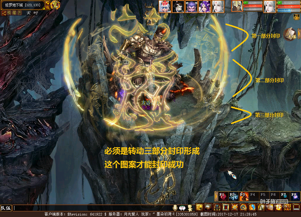 杀完穷奇分身,这时候我们需要将穷奇分身封印,封印又三部分组成,需要转动成固定图案才能封印成功,图案如图: [编辑:一笑奈何]