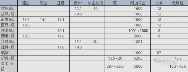 我是天若有情的菜根,虽然大力没落了,但是还是想说一些我对大力的看法,跟大力同道来探讨,也给大力新手一些参考! 主要分为以下五个方面: 一、大力装备属性及搭配技巧 二、部分伤害影响因素和变身卡选择 三、大力属性换算及装备选择 四、大力的几种玩法 五、敏力输出技巧 一、大力装备属性 (1)下面是炼化能够出现大力属性的理论最大值 实际上会比这个少1点,基本没见过满值 武器炼器的加成攻击说是2-39,但是实际上20多都算是很不错的属性了 下面这是配饰的大力属性6级为无默契,7级为有默契配饰,7级配饰属性已经洗不出来,但是系统拍卖会有 (2)搭配 搭配问题稍微提一下: 一套6级无默契配饰的属性是固定的,选好武器后,基本上就是通过帽子鞋子来凑属性,最好连击狂暴致命都满,如要放弃,建议放弃少许致命,但是最近的活动boss,不抗致命的也有,所以也不建议放弃太多,狂暴必须满(抓修时除外) 7级默契配饰一般弄一套的不多,致命披风如非极品,不如6级的致命加成(致命连次)那么一套配饰的属性也基本固定(敏功在配饰上选择加速后,需在别的部位补足属性) 同样选好武器后,使用鞋子帽子调整,如果使用:五级破+四介鞋子,建议先找合适的帽子,再找武器 如果使用:五级破+双四介,帽子属性应该是:加成30+,致命20,具体搭配看个人情况,套路都是固定的,配装先讲到这里! (3)加成攻击与基础攻击 下面要着重讲一下:武器基础攻击 武器上有个属性:基础攻击 非常重要!! 为什么呢? 因为所有部位的:加成攻击 他只跟基础攻击有关,加成攻击最终获得的攻击为:基础攻击*全身加成攻击的总和