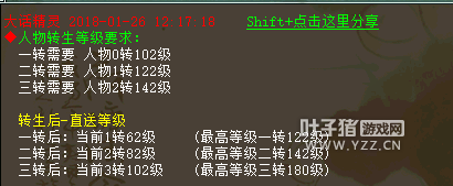 说明一下,玩新服如果你时间多,冲级的速度是很快的,如果你玩的不是男魔,前期换男魔角色转生之后最好直接转男魔,不然光多掏出点卡没用,还得煎熬着满7天的时间才可以换种族,我就被这么坑过,主要经验来得太快 下面聊聊练级模式: 【0转】 诞生东海渔村开做剧情任务可以直接做到20多级,然后去洛阳大理寺官员处答题,紧接着可以在村子领双做阿三任务升级至50级,接着小鬼。在双够的情况下,小鬼是可以抓到80级的。 另一种方式是抓小鬼升到70级根据任务提示找李靖领取了物理装备去把1-8称谓过了,帮派也顺便捐下帮贡加抗,开始做天。很多冲级狂人周五晚上就差不多可以1转,多余的双是留着转生后使用。 做天任务已经更新,每天只能做150环,有个风法怪挺牛B的,一秒即死,所以新区很流行香草男人,也就是男人带只敏比自己快的宠物,一直拉自己香草出混,甚至很多香草男人带队做天收费的哟。 90级即可抓鬼王了,而且周末就已经有周末任务了,级别刷刷刷地可以蹭上去,人物必须102级满法才能转生,其实0转挺好烧法的,你懒也没关系,新区很多卖身帮忙烧法的玩家。 可以说,新区前期,烧法与香草男人的赚钱玩家现在很多很多,都成为一种赚钱模式了。 那些可以通宵帮挂机练级的代理我就不多提了,有需要的玩家要擦亮眼睛,即使是所谓的主播,也可能是骗子,当然讲信誉的也多。 0转只用过到8称即可杀转鬼了哟。 【一转】 一转后是15级,去长安找袁天罡马上变成62级了,直接小鬼70级又可以做天了,90级可鬼王,双不够就做做天,等110就可以修罗了。 新服前期不少大力队伍睡杀卖身,也可以帮你开号,按次数收费。 一转的节奏是升级,烧法,过了9-10称即可杀转鬼。 【二转】 二转了也是找袁天罡直接到82级做天到90级,90级-110级是做天+鬼王,110-142是鬼王+修罗,升级+烧法的步骤。 过了11-14称,6坐骑也要过完,记得这期间要为自己备好一个玄阴宝鉴(以前称之为越光宝盒),没这个道具是转不了的哦。 像玄阴宝鉴前期可以卖到600W一个?我当时慢悠悠升都花了300W收,这个其实在周四晚上大闹天宫用积分兑换,或者你杀地宫用50点功绩兑换。 【三转】 三转直接102级了,升级模式为鬼王,110级-140级可鬼王+修罗,140级-142级为鬼王+域外或者修(每天100次),143级-180级为域外或修(每天100次)+五倍(参加帮战胜利一场一周280次,无帮战胜利为120次) 域外风情是3转140级才可以开做的,不管是域外还是修罗,每天叠加在一起100次就没多少经验了,很多玩家会选择做域外,毕竟这个经验比修罗高得多哦。五倍呢则是3转143级才有五倍经验,不可错过。