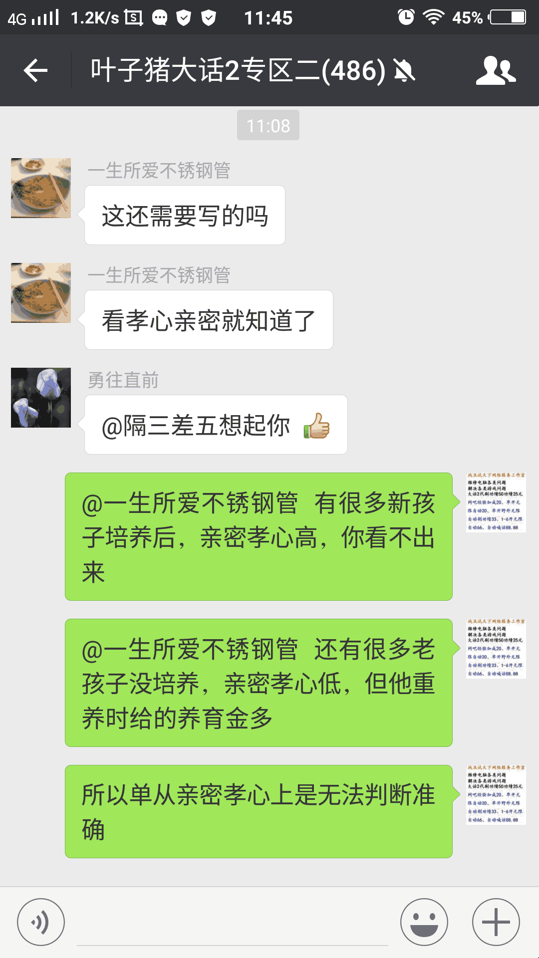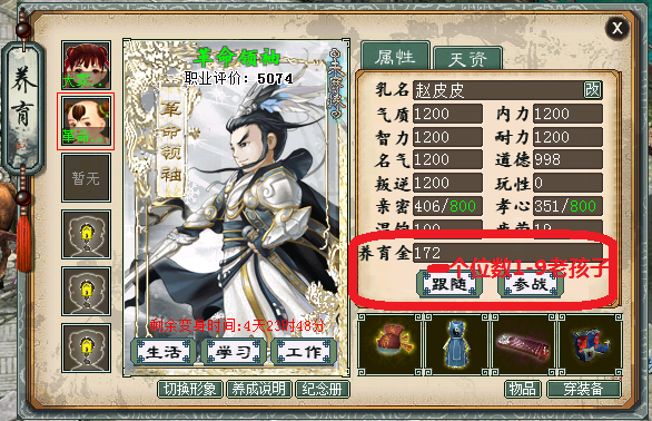 最近,有好几个微信上的大话玩家在群里或私聊问这个孩子是老孩子吗?如下图: 看来还有些朋友不知道判断新老孩子,所以我在群里说要写个如何判断新老孩子的方法分享出来,如有不足之处还望多多指教。马上有玩家吐槽了。如下图: 以前我也是认为看亲密孝心一下就看出来了,但是后面遇到好多孩子,单从亲密孝心已经无法判断了。 举个最简单的例子,新孩子一直培养亲密和孝心,老孩子没有培养亲密和孝心,这样就比较难从亲密孝心上区分了。根据我帮大话玩家养了几十个孩子的经验总结出以下几个经验。 我们先从新版老版孩子如何产生的开始说起,2013年9月12后出生的都是新孩子,在这之前的都是老版孩子。关于养育金,新孩子到了6岁养育金只有2160,老孩子在2013年9月12号前出生76天内的补偿3800养育金,老孩子在2013年9月12号前出生超过76天的补偿3800+6000*职业评价/4800。比如以前老版评价是4800的就是3800+6000*4800/4800,那么就是给9800的养育金。 综合几个方法来判断就比较准确,第一个方法是根据养育金的获得和消耗可以得出的规律,都是整数的,只有大部份老孩子养育金有存在个位数是1-9的。如果养育金出现个位数是1-9的一定是老孩子。这样可以排除大量的孩子了。那也不是说个位数是0的就不是老孩子,要结合下面的方法来区分。比如下面这2个都是老孩子就存在个位数是0和2的,如下图: ▲养育金尾数0的老孩子