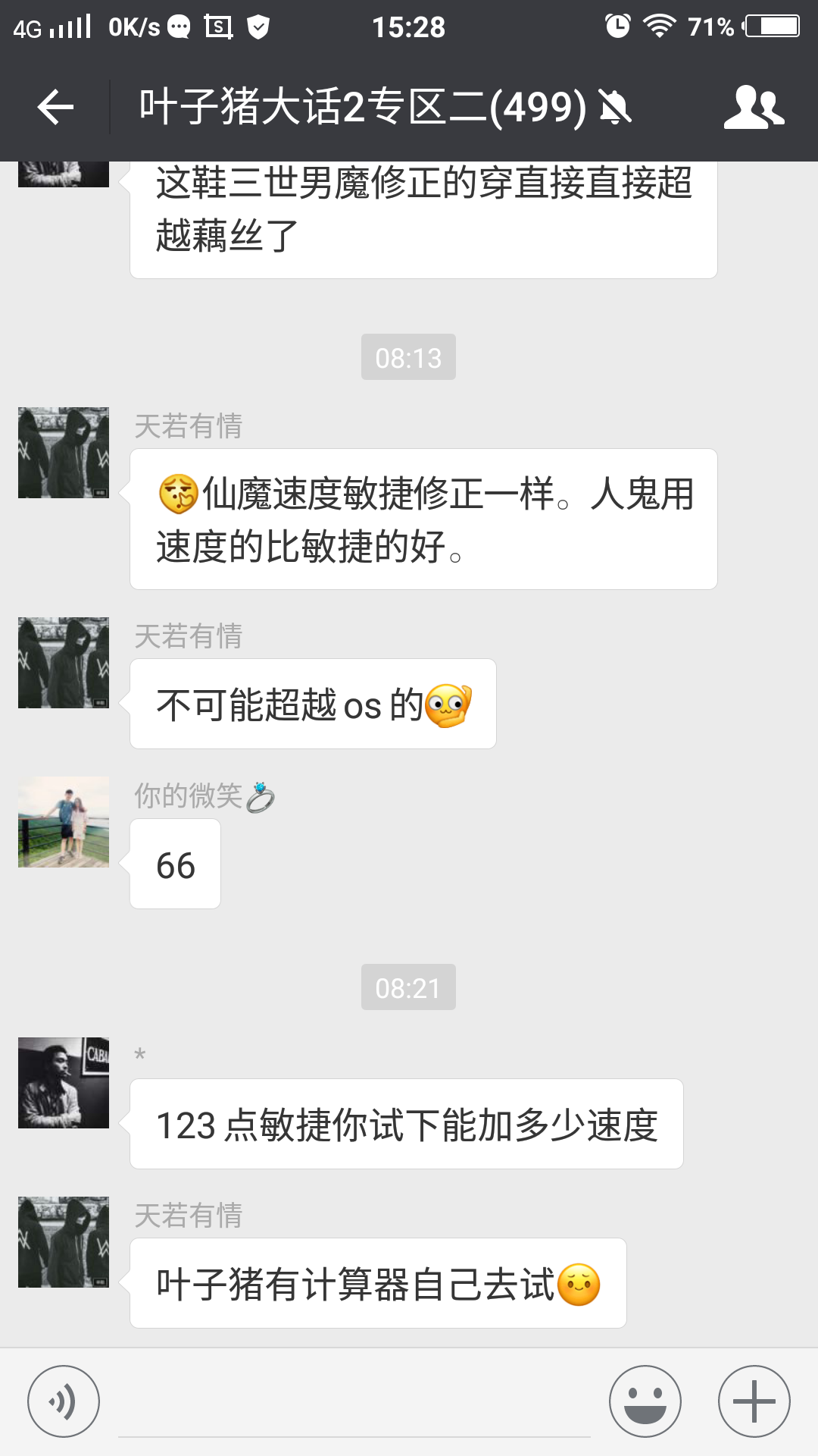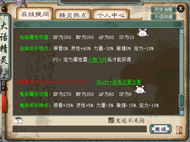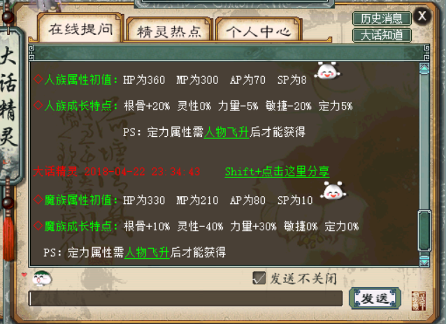 叶子猪大话2微信群上的玩家在群里讨论一双15级敏鞋的问题,这双鞋子是不错速度和敏捷加起来有234,详见下图: 15级234敏鞋: 有些玩家说这鞋子给三世男魔转的穿直接超越藕丝。也有玩家表示不可能,详见下图讨论: 出现这种情况,是因为部分玩家还不清楚速度和敏捷修正后加的速度到底是哪个加的多。小弟不才,借这个机会,把速度和敏捷这2项用数据的方式教不知道这2项的玩家来了解。 本文提到的例子都是以三世男魔法满转修正的前提下讨论的,如果三世男魔法没满的算出来会少,或者不是三世男魔修正的,不能把三世男魔法满修正1.276算上去。 说这个之前先来讲下种族成长的问题,很多人知道人和鬼会减敏,但不知道减多少。我也顺便科普一下。数据来源大话精灵,详见下面人魔仙鬼四种族敏捷修正。 人族成长敏捷减20% 魔族成长敏捷不减: 仙族成长不减敏,鬼族成长减敏15% 根据种族成长的特点,可以看出魔和仙敏捷是一样的,所以魔和仙我就用魔来计算就可以得出结果。对于三世男魔法满转的魔和仙,速度和敏捷加的速度是一样的。我通过没有穿装备和变身卡的情况下。各自用加速度和加敏捷的装备来计算,代入相同的计算公式,魔和仙加的敏捷或速度乘上转生修正1.276就是加的速度。通过计算得出不论是速度和敏捷或者是负速度和负敏捷效果是一样的。详见下面几个图!