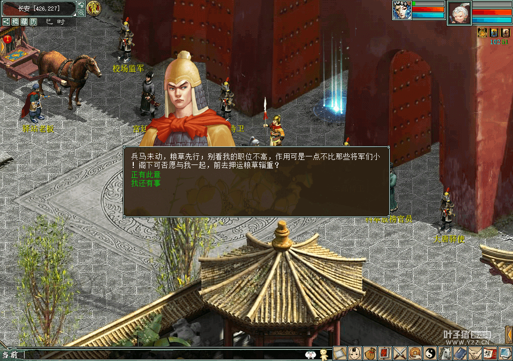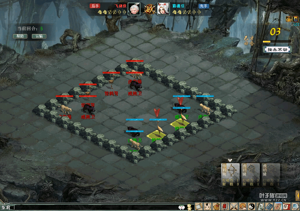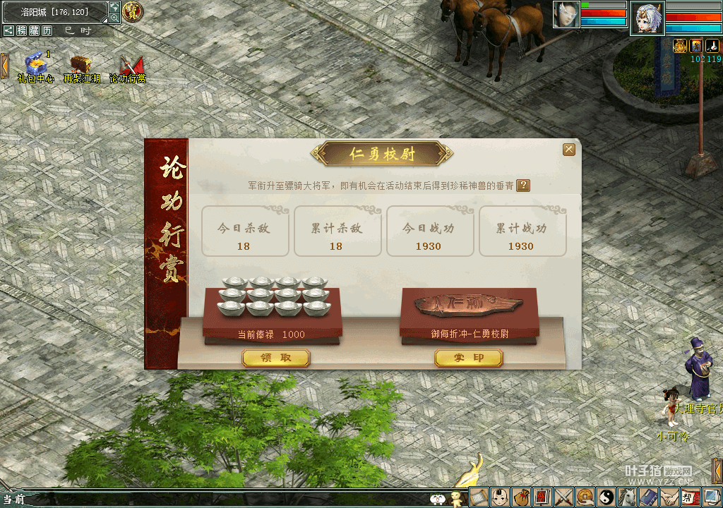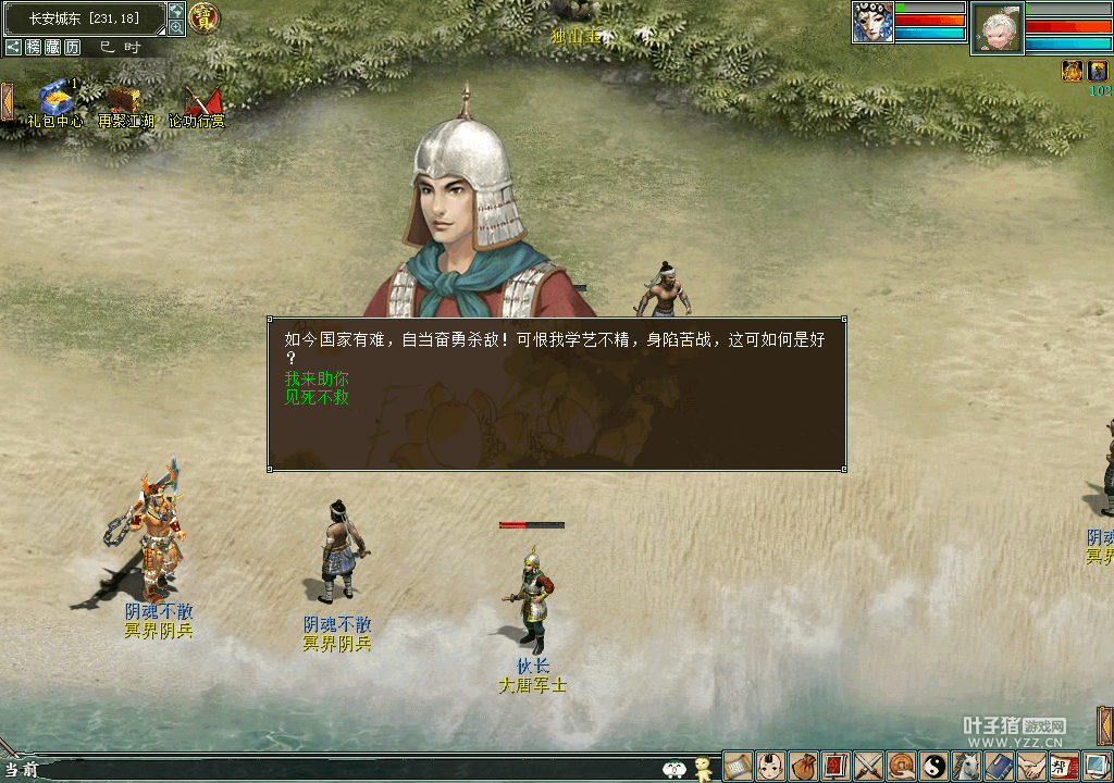 杀敌建功 每日首次通过四位护法的考验,可获经验、物品、战功奖励。 温馨提示:所获战功可用于提升 军衔,裨益良多。 活动奖励 【驰援友军·单人】 活动内容 活动背景 冥界阴兵来势汹汹,又皆行尸走肉,无畏无惧,令不少大唐军士陷入苦战。快去战场上寻找落难士兵并将其解救吧! 活动时间 2018年10月1日0点至2018年10月7日24点 参与条件 人物等级≥30级,时间宠等级≥10级 活动场景 长安东、大唐边境、大唐境内、长寿村外、北俱芦洲 活动流程 搜索战场 前往交战地点,可以发现身陷囹圄的大唐军士。 温馨提示:所救助的军士血量越低,则可获战功越多。 【论功行赏·单人】 活动内容 活动背景 大唐军纪严明,有功必赏;少侠功勋卓著,加官进爵亦不在话下! 活动时间 2018年10月1日0点至2018年10月7日24点 参与条件 人物等级≥30级,时间宠等级≥10级 活动流程 积累战功 活动期间,参与身先士卒、力挫敌将、深入敌阵、驰援友军、撒豆成兵、军需辎重 玩法, 均可获取战功;所得战功每日不清空。 加官进爵 累积战功达到一定数值,便可加官进爵,获取专属 军衔称谓;每日便可依照军衔高低,领取朝廷发放的俸禄。 此外还可以 掌印佩戴鱼符,化身英武的将军造型。 天降瑞兽 10月7日23时,所有官拜 骠骑大将军且 在线的玩家,更有机会获得 珍稀神兽的垂青! 【撒豆成兵·趣味】 活动内容 活动背景 冥界阴兵来袭,足见保家卫国之事半点马虎不得。大唐国师便施撒豆成兵 之术,以供大唐子民操习用兵之道,以备不时之需。 活动时间 2018年10月1日0点至2018年10月7日24点 参与条件 人物等级≥30级,时间宠等级≥10级 活动流程 进入战场与皇宫(88,22)大唐国师对话,可选择 匹配模式或 对战模式进行操习演练。 其中匹配模式需单人前往,对战随机对手; 对战模式需二人组队前往,开战后将为此二人切磋对局。 奉天行棋 1、战斗双方轮流行动,每方有10s行动时间; 2、每回合可行动的棋子类型由系统随机确定,玩家可查看后续3回合可行动的棋子类型; 3、每回合需先选中某个可行动的棋子,随后进行移动或攻击; 4、每种棋子在一回合内可移动的步数受 行动力影响,攻击范围受 射程影响; 5、不同类型棋子的 行动力、 射程、及其他攻防属性皆不相同,存在一定的克制关系; 6、将对手的所有棋子全部消灭即为胜利。 操练有功 每日前3次参与匹配模式对战,可获经验、物品、战功奖励。 温馨提示:对战模式无奖励。 活动奖励 【军需辎重·休闲】 活动内容 活动背景 兵马未动,粮草先行。为对抗来犯强敌,后方补给线也不能大意。 少侠可趁闲暇之时前往监运粮草,为国效力。 活动时间 2018年10月1日0点至2018年10月7日24点 参与条件 人物等级≥30级,时间宠等级≥10级 活动场景 长安城、咽喉要道 活动流程 报名监运 与长安城(428,229)大唐军士对话,即可报名参与粮草监运。 【将进酒·口袋】 活动内容 活动背景 大唐军士于战场之上奋勇杀敌,闲暇之时亦常饮酒作乐。听闻大唐将军酷爱酒令,何不与之把酒言欢? 活动时间 2018年10月1日0点至2018年10月7日24点 参与条件 人物等级≥30级,时间宠等级≥10级 温馨提示:此玩法只能在口袋版参与。 活动流程 进入军帐 点击口袋版主界面内“将进酒”图标,便可进入军帐之内与将军共饮。 [编辑:米奈]