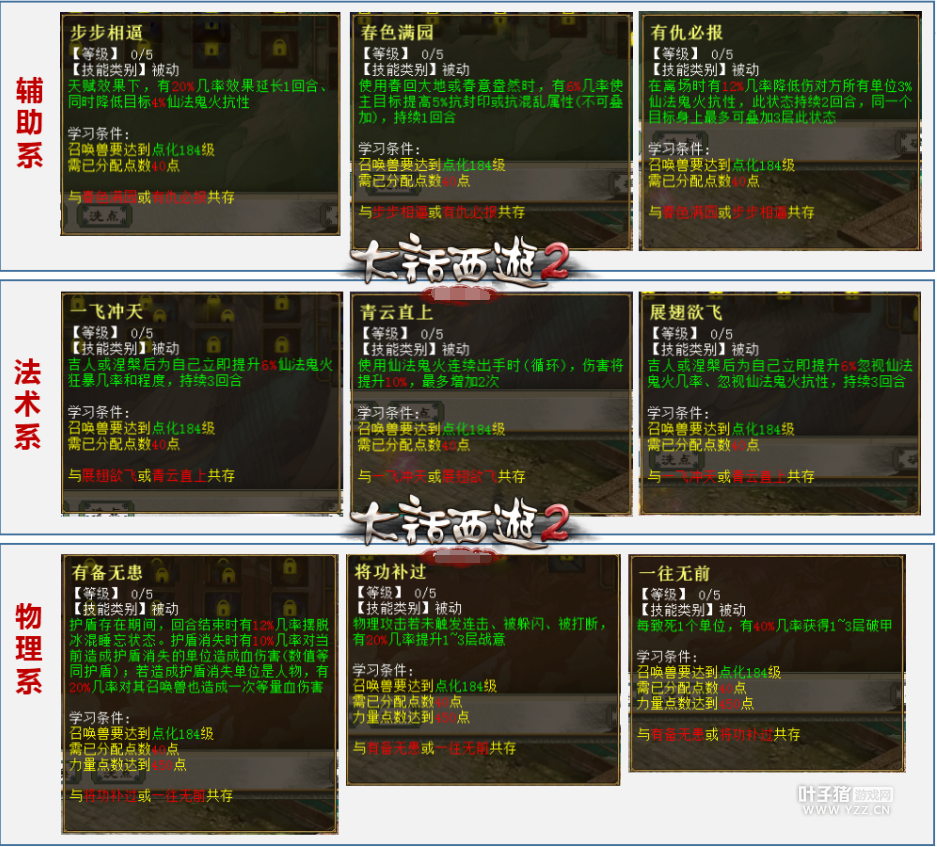 12月20日维护后,新资料片《万兽有灵》的新玩法【灵犀】开始测试,燕草带大家走进测试服,看一看全新的灵犀玩法 一、开启灵犀 飞升角色完成对应任务就可以开启灵犀。首先根据任务栏提示,到帮派门口寻找恶兽,神兽年的造型。对话需要战斗: 第一次战斗:需要打败恶兽,只有一个怪,测试时100W血左右(必须带召唤兽,不然会被直接秒杀) 战斗结束后继续对话看一段剧情,随后开始第二次战斗。 第二次战斗:不用杀,恶兽把你参战召唤兽收走。(只是剧情,不会从召唤兽栏消失) 继续对话,根据不同的选择出现不同的结果: 1、选择帮阿黄找到主人,需要找几个NPC即可完成,没有第三次战斗。 2、如果选择了收服阿黄,放生自己已有的召唤兽,会有第三次战斗。 任务完成后灵犀开启,在召唤兽的界面就可以看到灵犀按钮啦。 PS:飞升召唤兽才能开启灵犀哦! 开启灵犀之后,就可以兑换灵犀点,修炼灵犀技能了。 二、灵犀点兑换 灵犀点兑换需要任务经验和大话币,21点之后会有召唤兽亲密要求: 根据测试,兑换前10点所需经验和金钱如图,根据前10点的消耗来看不算多。 (此次仅为测试数据,以正式投放的消耗为准) 普通召唤兽:灵犀点上限40点 龙涎丸宝宝:灵犀点上限50点 这就意味着,需要40点以上灵犀点才能点的技能,普通召唤兽也无法获得。 三、灵犀技能 (说明:以下灵犀技能为测试期间截图,还会有一些调整。以正式开放后的实际情况为准!) 灵犀分为三系,分别是物理系、法术系、辅助系,根据召唤兽的加点不同开启不同的系。 1、普通召唤兽(灵犀上限40点) 下一级的技能开启需要召唤兽等级以及已分配的点数达到一定要求。 2、高级召唤兽:龙涎丸宝宝(灵犀上限50点) 与普通召唤兽相比,高级召唤兽最右边多了一排3个技能,这3个技能普通召唤兽无法获得。技能见图片: 再次PS:以上灵犀技能均为测试期间截图,还会有调整。以正式开放后的实际情况为准! [编辑:一笑奈何]