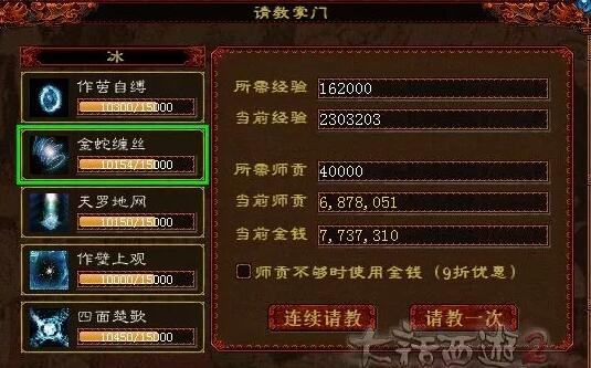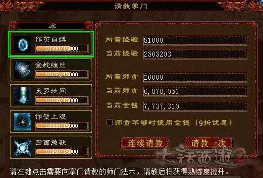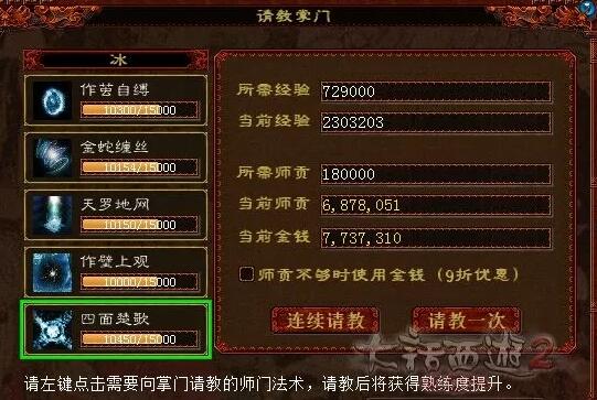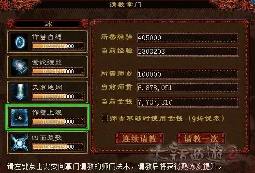 相信看过本周维护资讯的玩家都注意到了这么一条维护消息: “本周维护之后,师门烧法任务调整将在游戏试玩测试,由玩家找门派弟子切磋获得法术熟练度(需要师门贡献或金钱、各种物品)调整为可直接向掌门请教(消耗师门贡献或金钱、人物经验)。” 今天维护后,玩家在游戏试玩服第一时间为大家带来了一波测试报告,下面给大家呈上一至五法烧法的一次消耗! 注意:每次请教可得熟练度150点,一至五法均一样,都是150点,测试角色一转85级,最后请大家以全服开放后为准。 [编辑:咪咪]