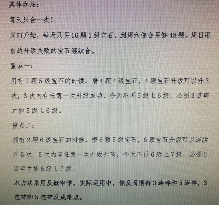 这位玩家,似乎总结出了每月一颗7级宝石的方法? 不知靠谱不靠谱,大家看看就知道: