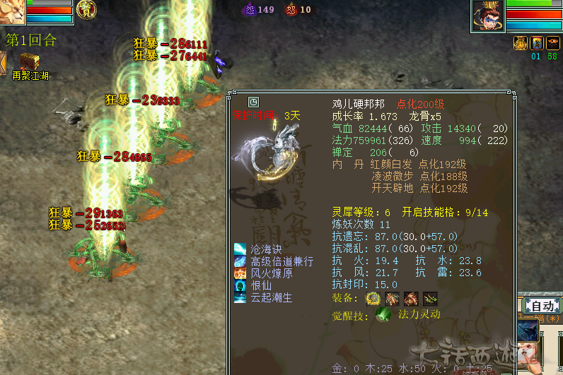 一位带去疾的玩家今天要来给大家分享分享自己的经验,希望对喜欢这只宝宝的玩家有所帮助: 经过几个月的摸索实验,无论法力,听天,三座还是七座,坐骑技能用山外还是万劫,带恨仙还是怒仙,在这里一 一给大家解答! 首先,必须仙7座带万劫,法力必不可少,即使你玩敏的,亲密600万,恨天收益更大。最后一个很尴尬的条件,人物等级180级以上最好。 因为去疾等级低是真的很吃亏。官方介绍2-6目标需要1000万亲密,实际上600就可以了。因为官方介绍的是170级去疾。 所以这玩意儿等级越高伤害越高被动触发几率越嗨。不过再嗨就是个百分之五十多,除非你钱多烧的。 这是软件条件,硬件条件就是套装: 如果洗不了这么极品,那就保留个灵和克。建议还是多洗洗,这套我洗了6E大话币。这个建议是不是很坑? 接下来给大家看一个对比图: |