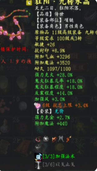 玩了一段时间的鬼,给大家说说我的一些心得!目前装备中,2件套装为无价刷够灵修后升级传世增加1%法强;衣服和项链暂无克,后续洗好增加约8点克;地煞星卡培养好后增加2点程度和约3点法强: