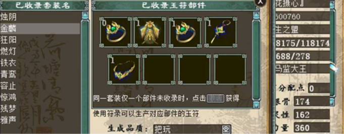 给大家分享一下这几个月游戏里追逐金麟的真实体验!这是我20年花费5080元购买的装备。 衣帽鞋链,大部分是跨服的。 穿上后的面板。 当时挺羡慕了尘武炼器,就是类似这种加成带克火的。 干光了体力又换一个号接着干。 一激动点了替换,一看竟是克水,只能继续炼。 炼到没钱没体力,回过神来,炼器的钱已经超过了武器价格,此时想起了GM。 找回原先的炼器后,不再挑战,玩几率需谨慎,勿上头。 大力是没金麟的,刷了一个月炼狱后,牛魔第一个冲线。 牛魔是垃圾底子,我反手就把装备扒光卖了,买了个170底子做牛魔,没多久又可以激活了。 弄了性价比装备给牛魔,冥雷卡,天赋点了强牛,没点5狂暴,护身命中15换7级能到86 没绝版腰带挂件,连击武器+高属性帽子+12级星卡,狂暴点天赋换双鞋能83.1,整套约2100元。 惊鸿都洗好了,金麟还没齐。 只能偶尔拿出来玩一下,龙马卡满修正加19.2连击25.6狂暴,换鞋子挂件就能有致命。 由于不是每周刷满,刷到116次的时候已经是第4个月了。 听人说一年了还缺戒指,我慌了,点了个号清了里面装备,算3500的底子。 最近14级加攻克星卡涨价厉害,我把星卡卖了,钱包回血的感觉真好。 宝石拉胯月饼48已补16,腰带星卡培养中,刷了好几周灵修,总算是传世金麟了。真是太不容易了!