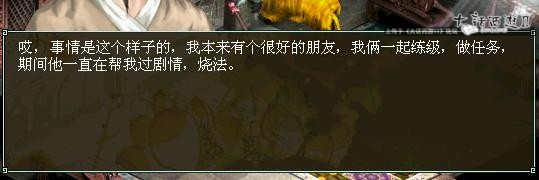 第四环:胜天籁 胜天籁有一个关系很好的朋友,一直帮自己烧法、过称,有一天买了一个神兵,结果竟然被朋友拿走了 帮胜天籁质问一下他的朋友“言九鼎” 拿了人家的东西,还挺横。这个也是两个怪,很好杀。 |