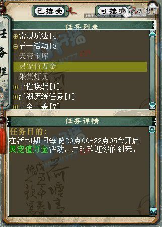 灵宠值万金:活动期间,每天的20:00至22:05 暂未测试到,请大家以游戏中为准! <<<点击进入大话西游2论坛讨论>>>