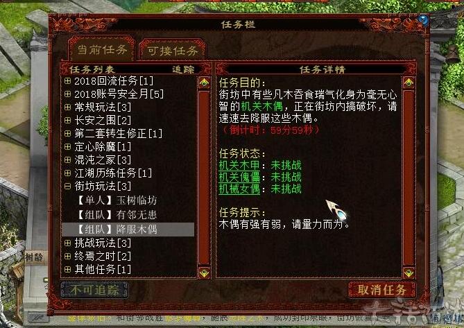 新街坊任务有邻无患已经面世很久拉,相信不少伙伴的街坊里的无患木已经在大家的努力之下茁壮成长! 前期的新街坊任务相当的简单,当你街坊无患木长大可以给大家庇荫之后,就会改变相关形状以及新的进阶任务啦。焚迹。在此给大家简单说一下新街坊任务-有邻无患的进阶组队玩法,单人很好做就不细说啦。 新街坊进阶任务组队任务有两,分别是降服木偶以及灵阵之术。 任务要求有1.只能自己街坊的成员加入组队击杀,别的街坊的成员不可哦。2.建议组常规队伍(因为有怪物会抽)如果火力十足也可以。 做完2个组队任务即可获得丰富经验以及60点街坊贡献哦,赶紧组齐队伍出发吧! 任务一:降服木偶(难度★★ 可以点击任务自动寻路,击杀3个怪即可) 任务的号分别是飞升160以上,杀完3只即可获得经验50W左右以及10点街坊贡献,如图: 任务二:灵阵之术(首先击杀修罗魔尊——难度★★★,然后点击任务自动寻路,激活五行珠即可,切记激活的时候几率遇怪) 完成一次任务基本获得60W左右经验+10点街坊贡献。 |