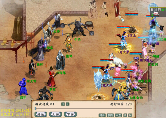 第2关: 这一关也很简单,位置点抱琴跟东笙抽秒就可以了,关键是要注意牛头马面,这俩货敏贼高还高攻,十多万血一下砍死。建议两只宝宝上克,其余的保护孩子没叫的单位,还有没事的宝宝可以俩上克。基本一回合完了就剩下主跟一两个小怪了..抽秒完事。