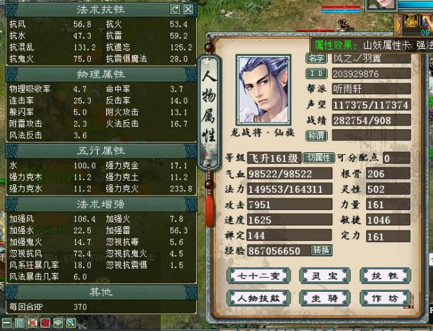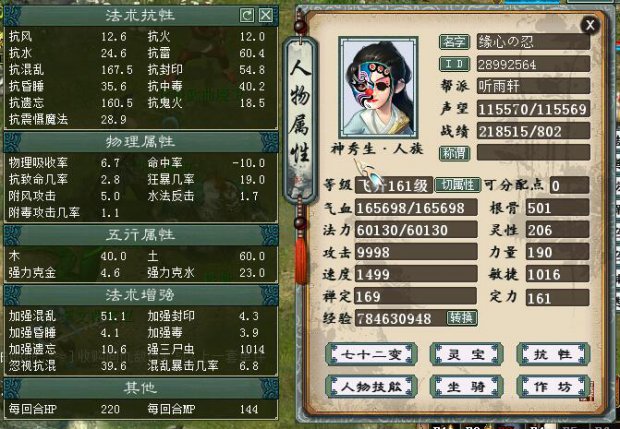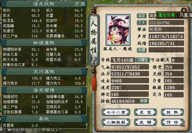 大家好!我是某某某区的某某某,跟高兴跟大家又见面了!这次跟大家介绍下《定心除魔》任务! 奖励,本人肯定五开攒分换神兵,当然也有其他的东西,个人喜好了,预计换一个神兵需要半年时间,反正杀着玩呗,蛮有挑战的! 下面介绍,我的队伍!先上男鬼,这是战斗属性图,变的水灵仙强法卡,套装:传世雅声,几率坑爹! 由于有青龙阵,所以展示战斗属性比较准确!男人变的猴子卡,17.5的武器!其他就不介绍了!吃了个F,下面有显示,套装:传世燃灯 克火传世容止!套装自己刷的,打垃圾装备上,凑合玩... 女魔变的凤凰抗卡!属性摆着,反正我也不知道大家心里定义的贫和平是什么标准... 队伍介绍完,开始介绍任务的准备!