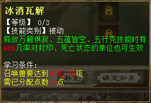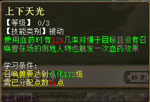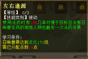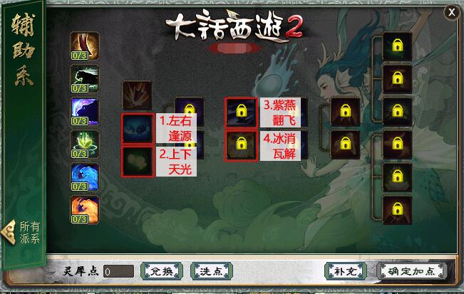 1、左右逢源 出现在第5秒 使用法药时有18%几率对慢于目标且没有召唤兽在场的倒地人物也触发一次法药效果。每级加6%几率,共3级。 2、上下天光 出现在第11秒 使用血药时有12%几率对慢于目标且没有召唤兽在场的倒地人物也触发一次血药效果。每级加3%几率,共3级 3、紫燕翻飞 出现在第22秒 释放万籁俱寂、五蕴皆空、五行克技能时有20%几率为目标附加一个限制状态,使其受到三尸虫恢复效果减弱10%,1回合。每级加5%几率、5%效果,共3级 4、冰消瓦解 出现在第29秒 释放万籁俱寂、五蕴皆空、五行克技能时有60%几率对封印、死亡状态的单位也可生效。每级加20%几率,共3级 其他常见问题 1、灵犀丹怎么获得 ==>目前在天梯积分兑换可以获得。其他途径如果有投放会再进行公布。 2、召唤兽交易之后灵犀点会不会清空? ==>不会,交易后灵犀点保留 <<<点击进入大话西游2论坛讨论>>> [编辑:韦小贝]