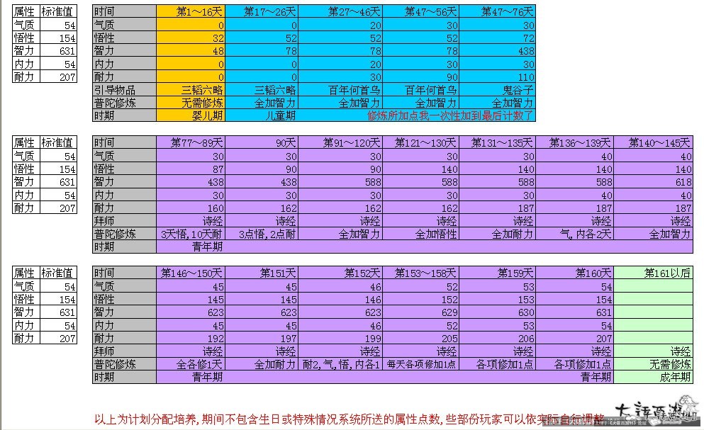 2009年2月16日出生的孩子,到现在,前几天刚刚成年,由于是第一次养孩子,这个孩子算是个半试验品,不过效果挺好。离我心中的完美还稍差一点,不过也算很好了。 另外,我把各个职业的养孩子图片和最优比例图片都发出来,仅供大家参考一套2级装备,算了下上3级也