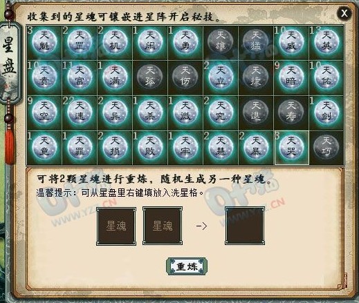 一共8个技能,每个技能都要有对应的星魂,也就是说:你要点哪个技能就要去杀对应的天罡星,杀完给的星魂你就可以差到空白里面,所有36个星魂对应的技能开了以后,会给这个技能。