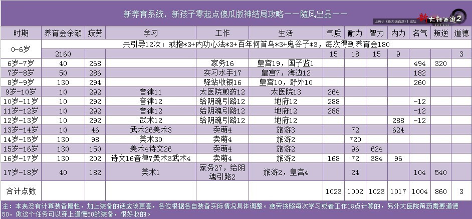 做了一个表格,送给还没有孩子的玩家或者重新养孩子的玩家用的攻略,真正的零起点神结局哦!对原来有极品孩子的玩家同样适用,属性更多,可调范围更广!
