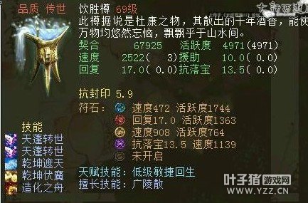 8、怎样判断技能的好劣? 很多人都知道丁氏猪肉是个好技能,但是最擅长的灵宝是金箍,可是金箍又不是那么容易获得。 这个时候可以用这样的方式来理解,你喜欢绝境,你又喜欢高敏带隐身的绝境,可是你不能决定绝境出在谁身上。 这时候假如你的九戒领悟了绝境,你会洗掉吗?答案当然是否定的。 所以,不要太介怀高难度的灵宝,往往高难度的技能,也可以运用好,就像九戒、泥巴、苍凛上的绝境一样。 更多游戏资讯请访问叶子猪游戏资讯中心:http://news.yzz.cn/ |