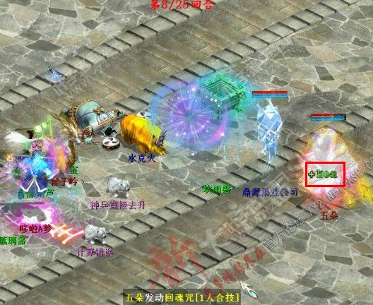 第八回合:凤凰触发回魂咒,复活。 对面的范式琉璃盏亮了,触发招魂 拉起队友胖子。 |