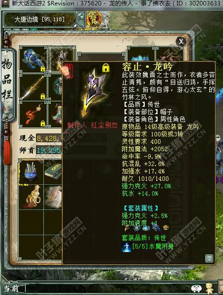 前几天,咱们看了6阶容止套的威力,让大家心有余悸,那么问题来了,6阶这辈子估计是带不了了,有没有适合平民玩家的容止装备呢?今天小编给大家分享一个4阶容止炮的属性及装备,大家可以借鉴,可是没有伤害图,待小编找到这位同学再上传伤害图吧。 >>推荐阅读:大话西游2黑无常江湖论道 开发组乱改吐槽无下限 <<<点击进入大话西游2论坛讨论>>>