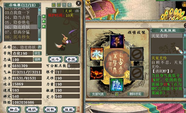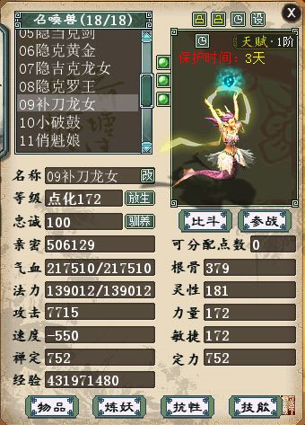 根据剩余伤害曲线图,我们也能推算出,不同亲密值下的狐小妖,需要加多少定力,可以开启“不死”状态。(本文对“不死”小妖如何被杀死不作讨论)如下表: 由此我们也可以得知,所谓狐小妖“吃”亲密,要想“不死”,亲密必须驯到上千万也不过是谣传,以加500定力为界线,其实驯到700万左右就可以了。只是亲密驯的越高,你可以少加些定力,多加些血量。 比如这个小妖,加了500+的定力,虽然亲密669万,但已经可以开启“不死”状态了。 以晓霜自己的小妖为例,1300万亲密,只需要要加340左右的定力,但我仍然给它加了定力500点,就是希望配合鬼7坐技能,增加躲闪法术的几率。 再说说负敏血BB,代表如泥巴、龙女、九戒、白泽等,这些BB如果要加定力,700-900定力,只多不少,甚至是全定力加点,要的就是它们靠高定力达到高躲闪的效果。 700定力龙女: 900定力白泽: 全定力白泽 |