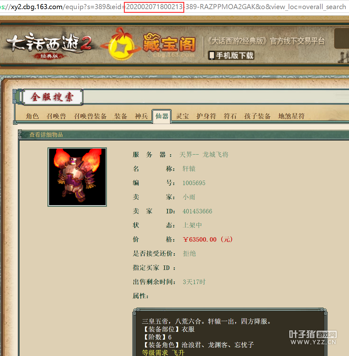 告诉大家一个藏宝阁的小技巧,买东西的时候可以看链接,上面有一个eid=日期,上面的日期就是物品的上架日期,可以知道这个物品摆了多久没卖掉,有经验的卖家经常会摆一段时间后觉得太久,就又取回来刷新这个日期,让别人看不出摆了很久~ 注意这一点,可以看出哪些东西是溢价比较高,没什么人买的,哪些是新鲜出炉的,小小藏宝阁中有大乾坤,一个小技巧希望可以对各位有所帮助~ [编辑:bieyu]