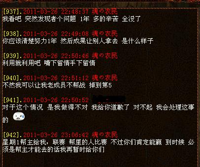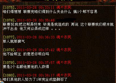 我不甘心,我们老成员的努力不能白费,我跟他要帮主,他不给我,我就在帮里发布消息,最后他把我踢出帮了。我并不是为了去联赛才这样,我跟我固定队友说让我去跟帮里更牛逼的组上去参加联赛,我说了要么这个队伍要么不去。大话是因为有这么多朋友在才会让大家难以割舍!