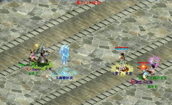 首先呢,这是一位朋友让我帮忙看看这个单挑号上还缺什么,然后一时技痒,去玩了几局。 开局可以看出敌我双方差距,对面年,5阶!我这号就小屌丝一个。 第一回合: 就像是WAR3中的人皇SKY,经典的开局‘华山一条路’流派,在大话中的单挑男人,4法混对方的召唤兽现今也成为一种非常经典的开局方式!