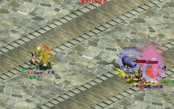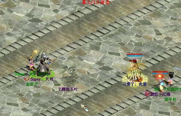 首先呢,这是一位朋友让我帮忙看看这个单挑号上还缺什么,然后一时技痒,去玩了几局。 开局可以看出敌我双方差距,对面年,5阶!我这号就小屌丝一个。 第一回合: 就像是WAR3中的人皇SKY,经典的开局‘华山一条路’流派,在大话中的单挑男人,4法混对方的召唤兽现今也成为一种非常经典的开局方式!