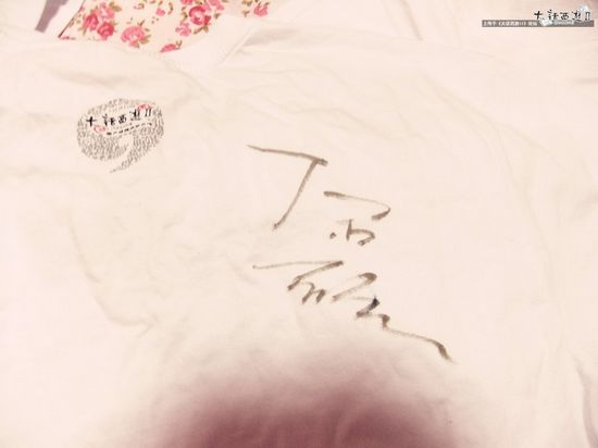 不得不说这个活动真是深得朕心呐,我是个周边控。签名控。 来得瑟周边了,首先展览的是我们的丁boss的签名 |