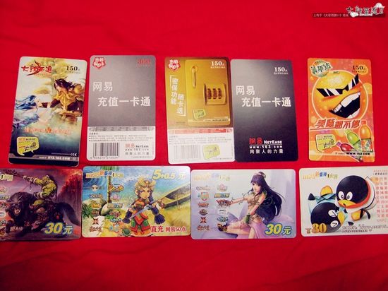 点卡们,真幸运把大话时期的点卡尸体们果断保存留下了。自从有了网银就不买卡了。其实挺喜欢好多卡片捏在手里的感觉。跟大款似的。 挑几张给展览下吧。这是我收藏的各种类型的。 两个客户端跟威武的年兽。这要是游戏中的就发财了。