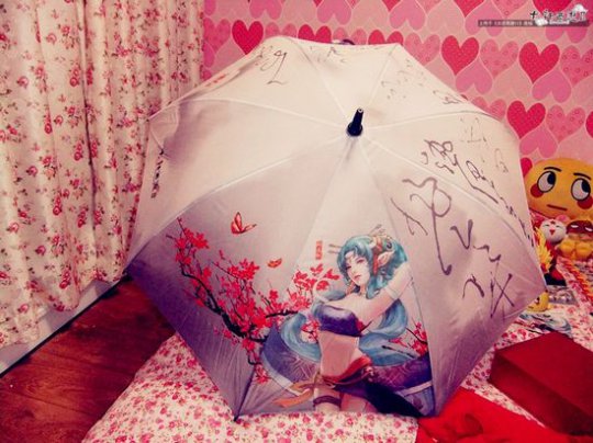 不得不说这个活动真是深得朕心呐,我是个周边控。签名控。 来得瑟周边了,首先展览的是我们的丁boss的签名 来个大合照吧。海报跟伞摆不下了。哇咔咔。送出去了一个大包子,一个化魄,N个小包子跟小黄金。这些是剩下的。