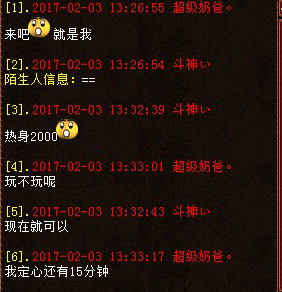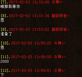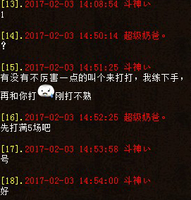 下面是奶爸下线给笔者发的大话聊天约战截图: |