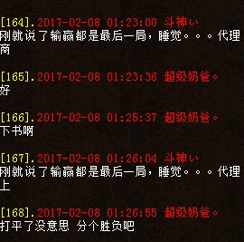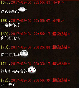 翻页是奶爸线下给本人发的微信约战截图: 游戏约战 下面是奶爸下线给笔者发的大话聊天约战截图: 下面是部分皇宫PK录像: