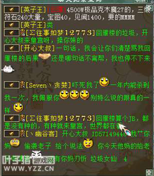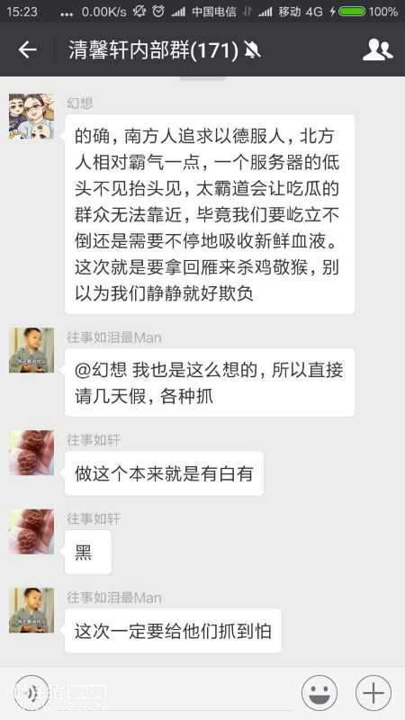 《清馨轩》灭帮记 沉寂了两年的15年老服务器剑侠风骨,自打剑侠的第一敏队清号以后《仗剑天涯》排名一路下滑,《清馨轩》借机一举越上服务器排名第一帮派,而同是老牌帮派的《回雁楼》因管理层变动,近一年也跌落低谷。所谓林子大了,什么鸟都会有。今天就给大家分享一下近一个月发生在剑侠风骨服务器那些看不到的厮杀。 主角介绍 Seven 贪婪----清馨轩帮众(不是很了解,2年没玩大话了) 紫霄樱桃----绿水汀帮众(外号小八婆,到哪那不得安生) 开心大叔----回雁楼管理(操作人:至尊@Long) 起因 很简单,空间点赞有几率得红包,Seven贪婪,因为在紫霄樱桃的空间点赞未得到红包,世界开骂。之前樱桃与贪婪也有一些瓜葛,正好此事发酵,于是樱桃在群里说了一堆种种事情,当然作为旁观者的我,也无从去考证,意义不是很大。 这里要介绍一下 樱桃与回雁楼及至尊@long的关系,相信剑侠这个服务器的人基本也都知道:紫霄樱桃,不管是曾经还是现在,回雁楼对其还是比较照顾的,不管她在哪个帮派。----小女孩一个,除了那张嘴八婆的不行,心底不算坏,也是个多管闲事的主(跟长相无关,更别说是否见过面了)。 在Seven贪婪开骂樱桃之后,有了至尊@long 刷了一个铃铛,内容:“清馨轩的Seven贪婪我教你玩大话吧,明天我见你的号还在清馨轩,我见风情队就点。” 后清馨轩的几个大号也借此刷铃铛点名骂《回雁楼》 事因Seven贪婪空间点赞没拿红包