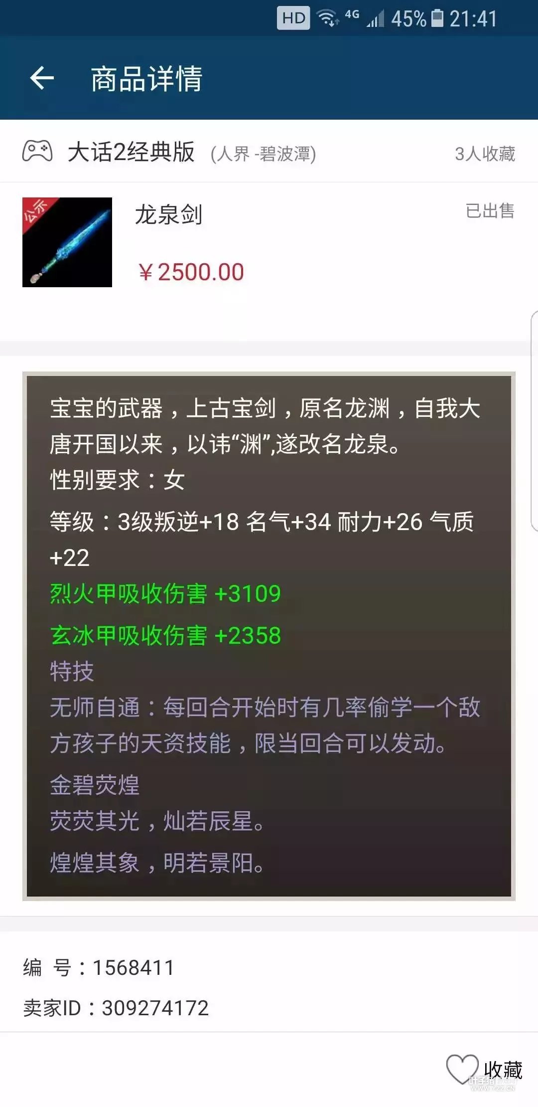 这是碧波潭的一把龙泉剑,雕琢之后的特技确实很强悍,不过2500元也有人要了? 可能贫穷真的限制了我的想象力,再看看下面这个孩子武器,直接标价18W了,我不由怀疑游戏有多少有钱人了? 有玩家不信现在有双控人,即使有,也不可能为这点发动几率耗资18W吧?1.8W有人点就不错了。 不过有钱人的世界我是看不懂的,就像曾经一条15级项链都能飚到10W一样 这个项链10万