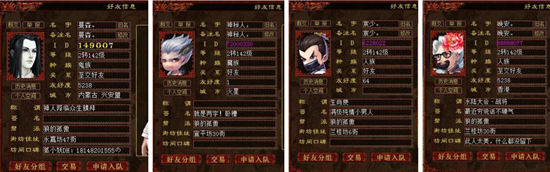 记者莎草子:我有个问题很好奇~是你们一直在二转不肯转生,还是要继续往前冲? 曼森:不转啦,我们满级,2转142 记者莎草子:就是做个二转帮?为什么? 曼森:情怀。 记者莎草子:是因为不舍得这个游戏离开你们~可是因为现实没时间玩? 曼森:没时间是一部分,大家平时都是上去做做任务,跟帮里人聊聊天,做做任务互相打趣一下。 记者莎草子:你们帮有多少人? 曼森:帮派的人是满的,因为我们帮气氛特别的好,也有一些大号在帮里,二转的之前有50左右吧,现在没那么多了。 记者莎草子:建帮多久了呀~ 晚安:两年了 记者莎草子:现在的玩家都在努力冲级~而你们一直留在二转,考虑过这样还是会影响帮派的发展吗?还是只是为了那份情怀? 曼森:不会耽误帮派的发展,我们帮里人打帮战都非常积极,曾经有一个玩家结婚当晚还在手机打帮战的,我们帮也打进过甲级,但是因为等级人数差距,我们在甲级有些吃力,就回到乙级了 记者莎草子:对你们来说~大话是什么? 曼森:大话对我来说就是生活的一部分。 暗杠:不敢老玩,又离不了,老婆都是手腕通天的主 永顺集团:大话对我们来说已经离不开了,虽然我们是九零后,但是我们已经在大话的路上坚持了很多年,大话就像我们的老朋友。有不开心的事可以诉说,有烦心的事可以和好友诉说,大话就是我们的精神领域的寄托,我在大话认识了很多兄弟,我们可以打趣、胡闹,不用想太多,可以释放自己的本性,这些都是现实给不了的。一生大话,一生兄弟,一声兄弟,一生情意。总而言之来说,我们把大话当成了我们的生活,我们的精神层次的释放。 害羞的流氓:是一种习惯,游戏 晚安:对我来说 还是这些兄弟情谊把 能认识怎么多好兄弟 也是很开心的 。 记者莎草子:可是现在二转不多呀~ 曼森:只要有一个人,我们也会坚持下去。 永顺集团:我们就是希望你给推广一下,我们二转,二转一样可以玩的开心。 宝宝展示