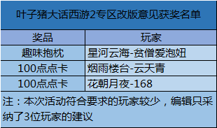 大话西游2点卡抱枕派发!周五专区改版建议获奖名单