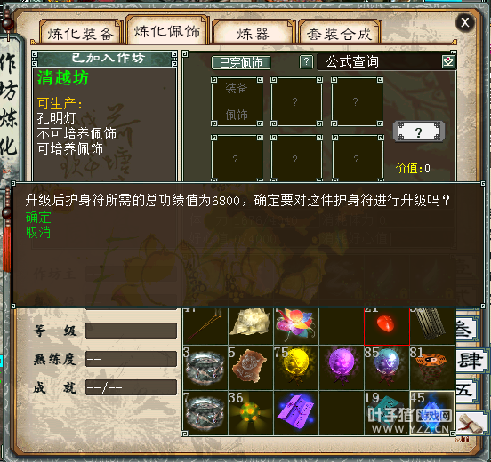 这里可以详细了解到八级护身符人物等级佩戴是3转180级,功绩需6800,材料就是无量