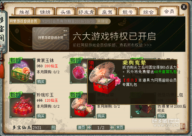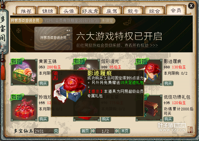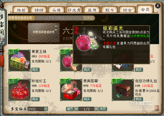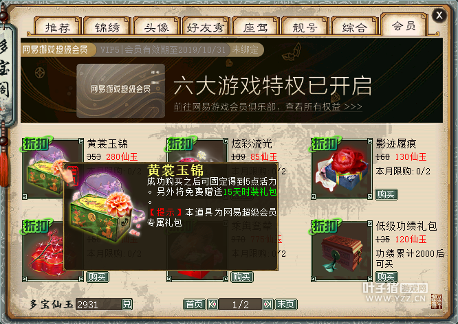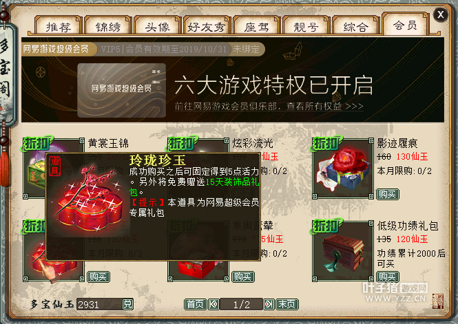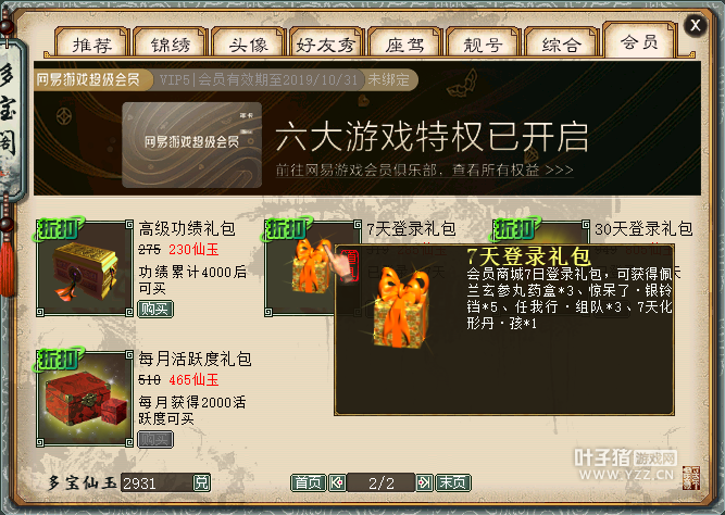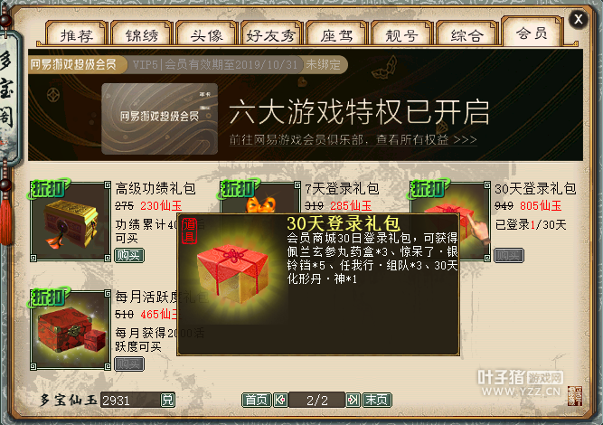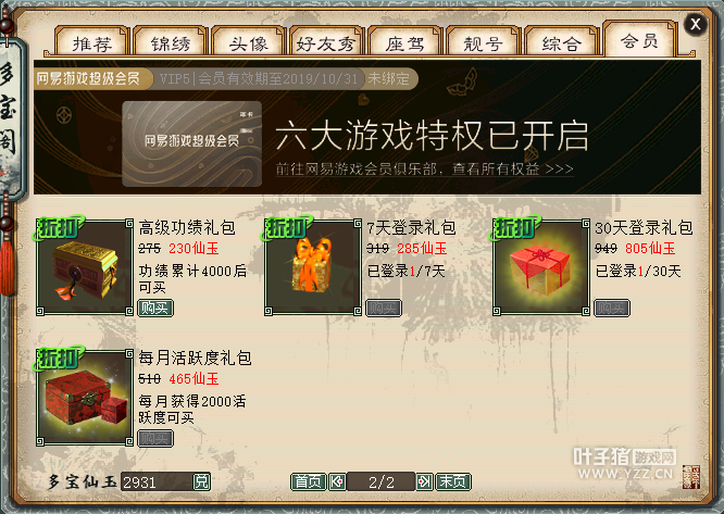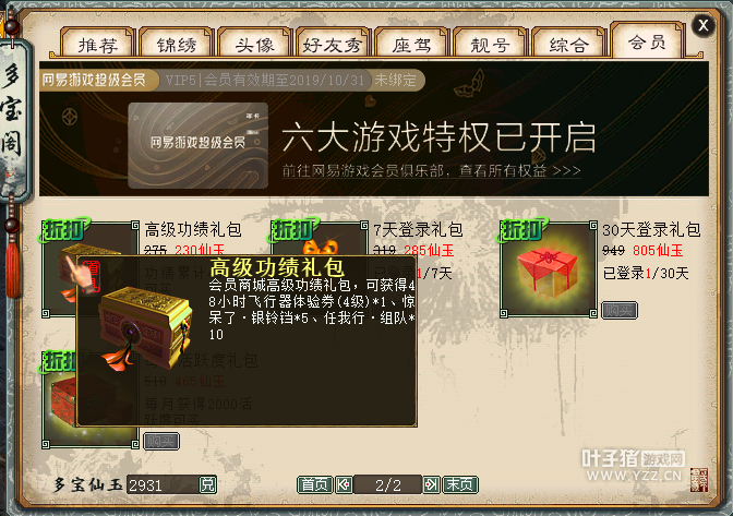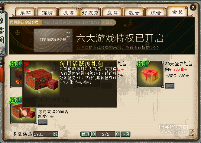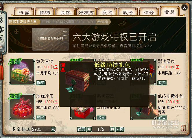 现在游戏也了相关的会员福利,我赶紧上号瞧瞧,也请小伙伴们耐心看完,因为我在使用仙玉测试的过程中发生一点小插曲,联系了在线GM了解情况,这种问题相信不少玩家会遇上。 除了给小伙伴们介绍,我也用仙玉测试了下效果,后面重点会讲下低级功绩礼包和高级功绩礼包: 这是多宝的游戏界面