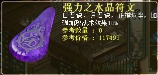 隔空取物符:可移动的超级管家。以后需要取什么东西,不用跑那么远了。直接随身携带。对于转生次数低物品框少的朋友可以借用此符增加储蓄量。 鹿皮回生符:女人不再是问题。如果你是血族。又没钱培养佩饰抗毒伤那就选择这个吧。如果你是女魔转超级血族那么也选这个吧,60W血每回合回3W让你彻底摆脱女人的烦恼。 金箍大战:看的观众打瞌睡,怪谁?就怪它吧。。控制后杀死时代,金箍将是胜利的关键。每次物理攻击增加怨气25点,每次法术攻击增加怨气50点。而用此符每次受到攻击额外获得50点怨气,一个队伍敏单位用这个,不容易挨打的血单位用别的符文。简直是完美的搭配。 金箍大战,拜其所赐一点也不为过。 五行变换符文:使用师们法术时消耗当前血量的33%提高100%强克某一五行。“某一五行”意味着可选择五行。“使用师门法术时”意味着可战斗中选择。不得不说,这个符太变态了。三尸为什么能伤害4W,仙为什么能秒冰块21W?虽然是在不抗的情况下,但是不得不说,在忽视的前提下强克可以成倍的提高伤害。成套装备恐怕也很难达到100。而这一加就是100%,可见其变态程度。 组队飞行符:在历届开发组面对面中,都会有朋友提出开放组队飞行。这下终于实现了,不过用时有限,还需要花费金钱购买,组队飞行本是在任务完成后大家一起飞避免加队浪费时间,但是现在要花钱去购买符文,值得不值得,就要看开放后此符文的价格了。 吸血符文:物理攻击33%几率附加4法1熟练三尸虫攻击效果,此符文是为力魔准备的。砍宝宝怕反镇? 那就用它吧。付混付吸付三尸可谓绝配。有伤害,有回血,有控制。 下面是符文介绍修正版: 特殊类: [编辑:夏雨轻轻]
