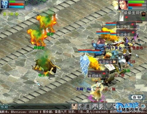 此时的女主角和大家正在忙碌中, 而我则抽空去这些灯笼小人摆出来的路径上行走 , 拍照。真的很感叹有如此浪漫的女生, 几百个小号, 真的太庞大了。。。。。。问过之后才知道男主觉到现在依然毫不知情, 都不让他上号, 说12点后再上, 于是我很是期待被蒙在鼓里的生日主角看到这些时的反应。 12点要到了, 这时我接到通知要跟着男主角后面全程录象了。匆匆准备下,就开始了。由于是录象, 中间只拍了几张照片,但还是发出来让大家看看。 起点:帮派门口:当男主角一上线, 我们齐齐燃放了灿烂的琉璃烟花, 并一起说:“修, 生日快乐”。主角估计也是被吓到了, 激动的半天没反应, 然后过了很久才打出“谢谢你们”。 现在惊喜太早啦,好戏才刚刚登场呢!女主角居然出了个谜题让修猜 , 猜对了才能前往第一个场景。录象后期补上,这些谜题和一些小意外都在里面。 修很聪明,很快猜到是白骨。我们一起跟着去了。原来修身上的香旗子都被拿走了,本来是计划让他一个人走去的结果变成我们跟着一路杀过去。 图一
