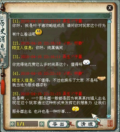 各位路过的公子哥、靓姐儿上长安青楼玩过没长安青楼老板招呼姑娘们接客的情形你又见过没有 今天这事儿就让我给碰到了 在开贴之前,先做一个简单的自我介绍:我是一叶知秋的弄玉ゾ子墨,在未合区之前叫灵采臣。最近凭借一贴“想念你,我的颜如玉”加入叶子猪攻略组。今天大闹完后一朋友神神秘秘的对我说:我有资讯,赶紧去采访,并给我发了个坐标: 虽然自己加入的是叶子猪功率组而非记者团,不过考虑到这个资讯可能会很有价值,就答应了朋友屁颠屁颠的跑过去当了一回临时记者,结果被看到的彻底的雷焦了。 ![]() 彻底的雷焦了 估计此时各位看官跟下图一样被雷倒在地了吧...... 此举是哪个天才哥哥想出来的,他这样做是出于什么样的目的,相信各位跟采臣一定非常好奇。带着这一份好奇心,采臣找到了图片中的“老鸨”进行了采访(当时加的临时好友,聊天内容忘记截图了,再上线找老鸨不在了。各位看帖的哥哥姐姐不要对采臣拍砖啊。 通过对“老鸨”的采访,事情的原委总算也是清楚了。原来在下午的天庭任务过程当中与某玩家结怨,一气之下把二十多个小号练到10级,然后把众多“接客女” 昵称以结怨玩家名字加上亲属名称在长安青楼门口排列起来。 采臣:您好,我是叶子猪攻略组成员,请问可以对您进行采访吗? 老鸨:可以啊。 采臣:你这样做,是有什么目的的吧? 老鸨:是这样的,两个人带我做天,嫌我太垃圾把我T掉了。就花了一下午练了20多个号。 采臣:你说你练了20多个小号,是不是还有其他号没有上啊? 老鸨:机器太卡,只好先开这么多了。 采臣:你感觉花费这么多的时间精力去做,是否值得呢? 老鸨愤愤的说:都是让那个装B的人弄的,虽然是很麻烦,不过心里高兴就行了。 采臣:以后你还会以这种形式来搞这样的“非正常集 会吗”? 老鸨:不会。 采访到这里,采臣感慨万分。当大部分平民玩家遇到一小撮品行不好的RMB玩家时,除了只能在世界上骂一骂,对待RMB玩家貌似是无能为力了。不过这位仁兄的举措却是让人大跌眼镜啊,采臣先不管他们两人在事实上谁对谁错,出于对他想象力的钦佩,我还是要喊他一声“天才大哥”。 在采访的过程当中,多多少少也有玩家或路过或驻足。于是采臣随机加上几个围观者,听一下他们对这个“天才大哥”持什么样子的看法。 哈哈大笑者: 保持沉默者: 知情人士: 不明群众: ![]() 不明群众(一) ![]() 不明群众(二) ![]() 不明群众(三) 后续突发事件: 当“老鸨”把所有的号关掉后,人群渐渐散去。只留下采臣一人在原地截图。此时一个大哥招呼了一声,记者同志,跟我走吧。 我愣了一下,去哪里? 这个大哥嚷道:别说了,上车就是了。 于是采臣就跟在他屁股后面跑,看他在捣鼓什么名堂: 只见他不停的跑动着,直把采臣拉到了修罗古城。采臣很不好意思的对他说:你不要这么热情,我只不过是个临时记者,而且我是小弟弟,不是漂亮的小MM。 他呵呵的笑着:这有什么要紧的, 我只是想带你去一个地方.... 可是他东转西转,到底要把采臣带到哪里去呢? 转悠老久后,他郁闷的对我说:我想去最上面的那个地方,我昨天还去了,现在却找不到了.... 听到他说想去“最上面”后,采臣突然明白他要去哪里了: 采臣很喜欢这儿漂亮的风景,可是他为什么要带我来呢?听他一说,采臣才知道,原来这个大哥因为自身原因以后上大话的时间会很少了,他希望在采臣的见证下,在这儿拍下照片留下珍贵的回忆。 ![]() 截图 ![]() 截图 在采臣与他告辞一段时间后,突然想起还有一些重要图片落下没有截下来,于是再次上线,发现这个大哥还在原地伫立,静静的在思考着什么: 采臣结语: 大话,在对于此时正在看帖的您或者曾经玩过大话的朋友,在过去的日子里头积淀下来了太多太多值得回忆的东西。就拿采臣来说,上初中的时候,班上一个女孩带上我第一次玩起了大话。和她在一起的感觉,总是那么的幸福。可惜的是,她太优秀,优秀得我都不敢告诉她,我在暗恋着她。在读高中后,我们之间相互没有任何通讯方式,她也不再玩大话西游,至此就断了音讯,唯独留下的,就是她曾经的昵称“弄玉”和我的名“墨”。 在大话这个世界当中,大家都在形形色色扮演着自己的角色。在每个角色的背后,都是一个有血有肉的玩家! “天才哥哥”用他那特殊的形式来证明着他的存在,来表达因为别人骂他“垃圾”心中所产生的愤慨。“迷路大哥”用他的形式向采臣讲述着:在这儿,曾经有他和他的亲兄弟的身影存在。 大话,不断变化的是游戏的可玩性,唯独不变的,却是一个角色身后那一个个不断跳动的心。 [编辑:星陨]
